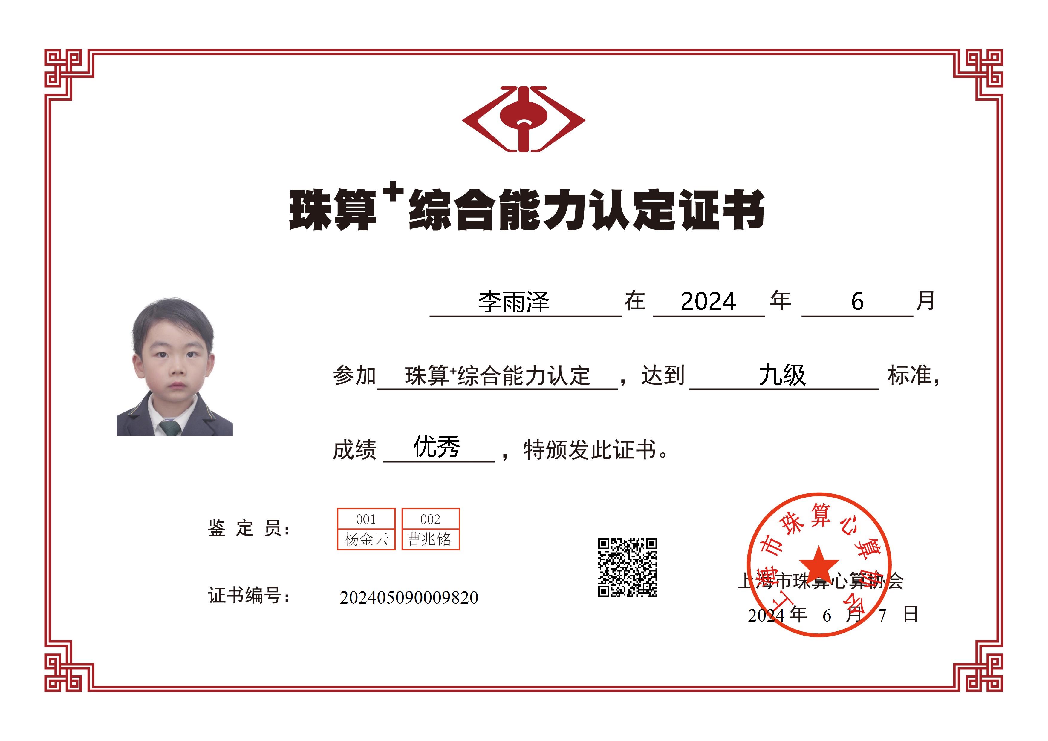 2024年7月8日 23:28 433498 20240607-少儿学校-珠算+九级-李雨泽.jpg