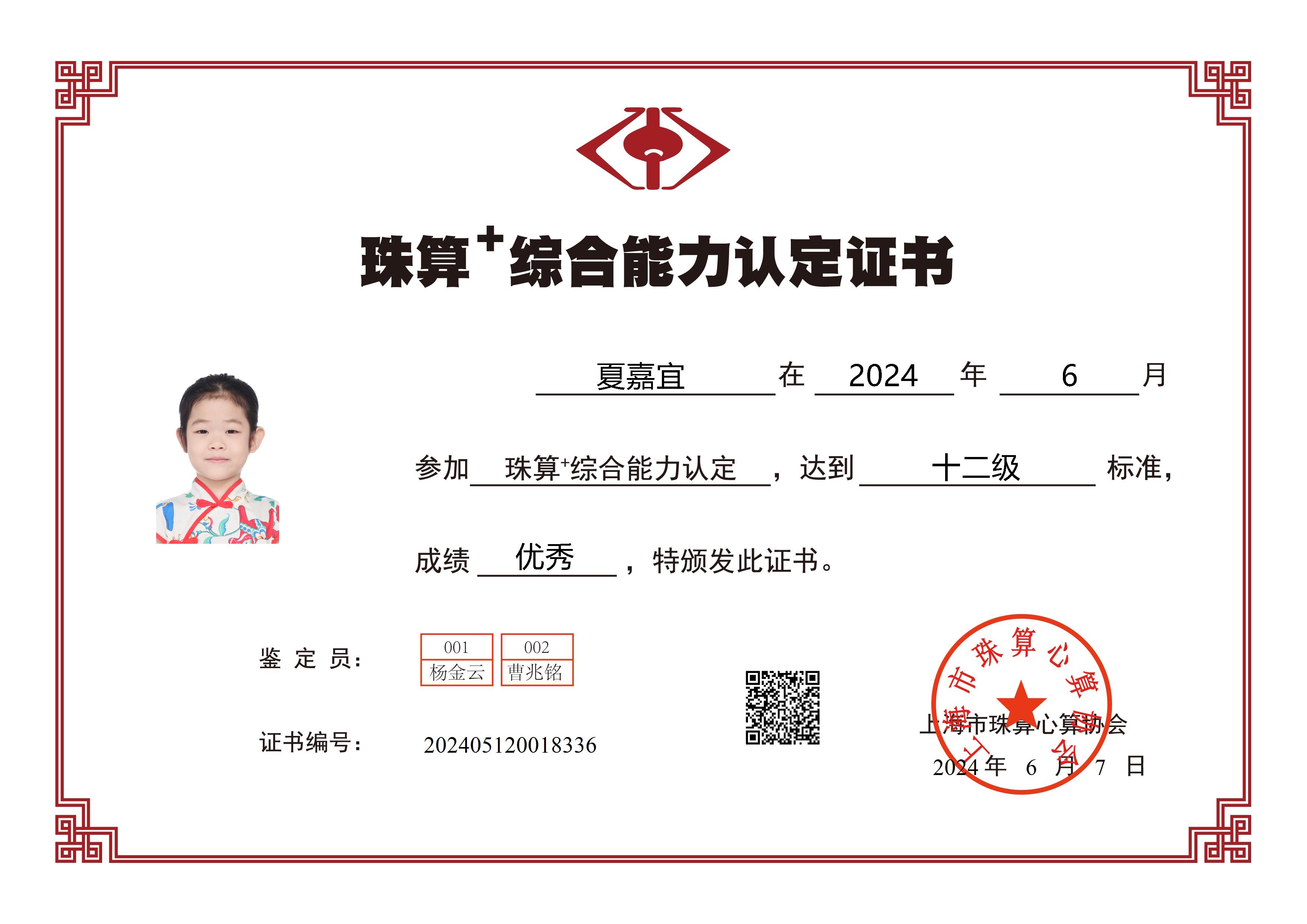 2024年7月8日 23:28 436845 20240607-少儿学校-珠算+十二级-夏嘉宜.jpg