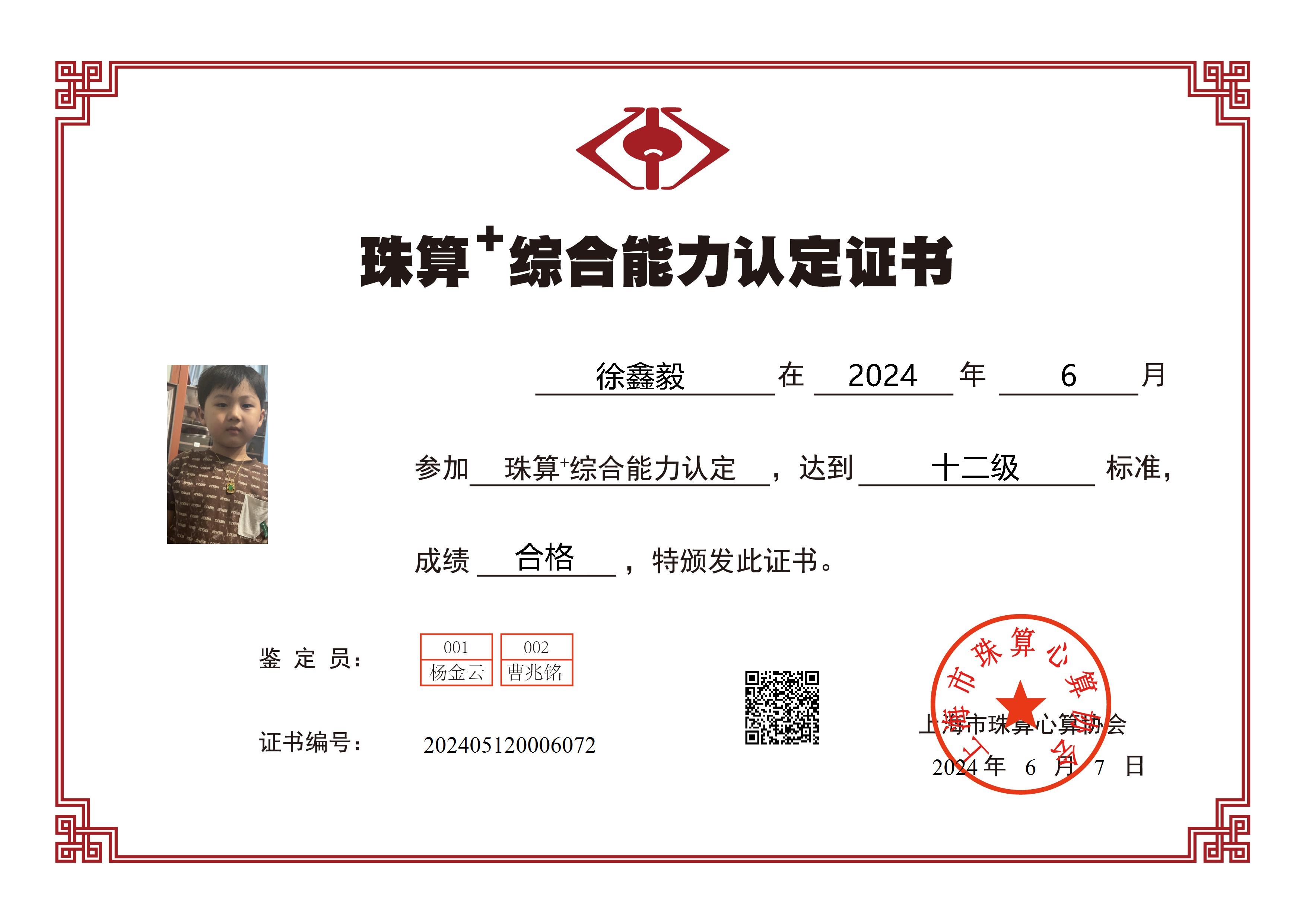 2024年7月8日 23:28 444120 20240607-少儿学校-珠算+十二级-徐鑫毅.jpg