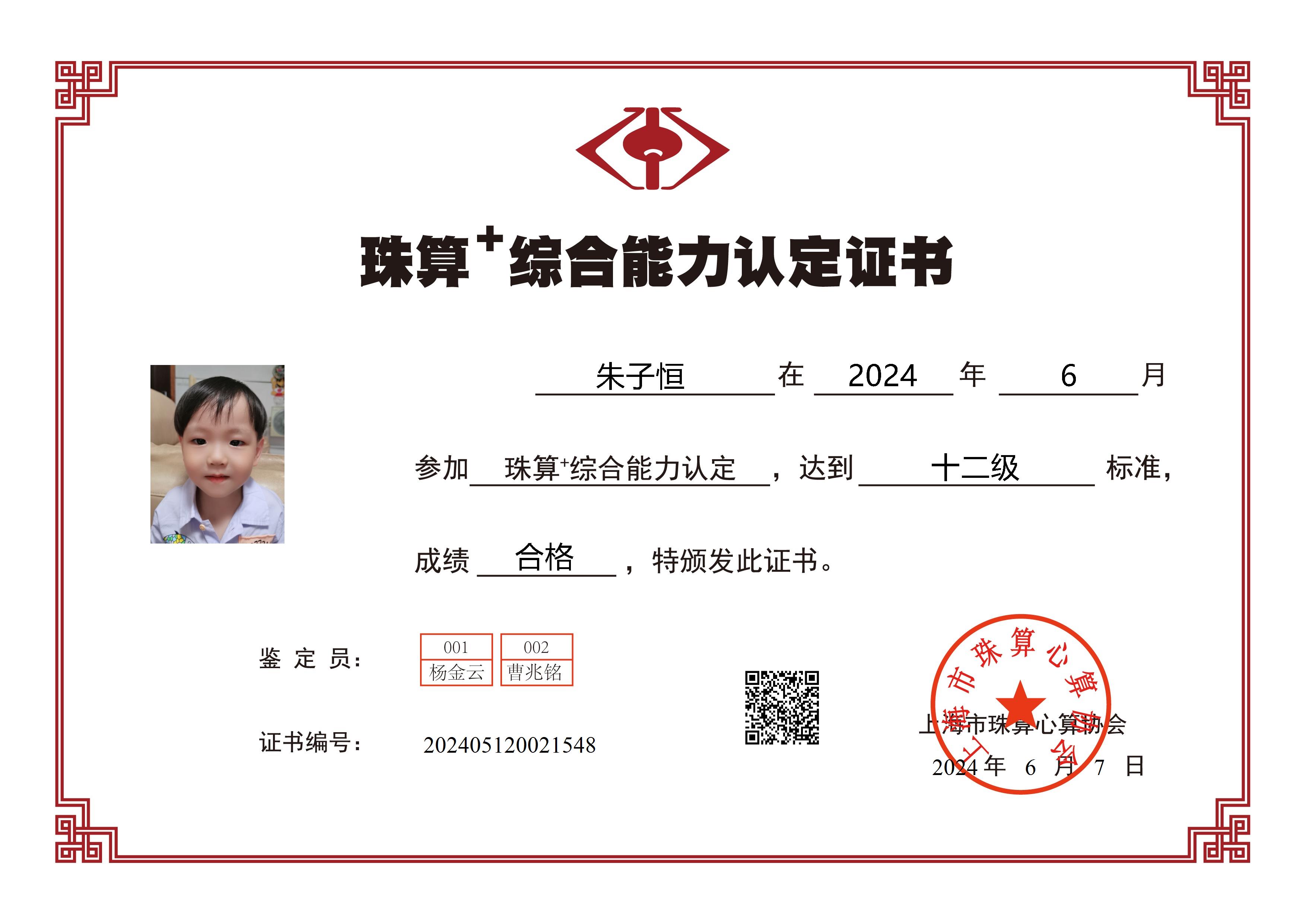2024年7月8日 23:28 436160 20240607-少儿学校-珠算+十二级-朱子恒.jpg