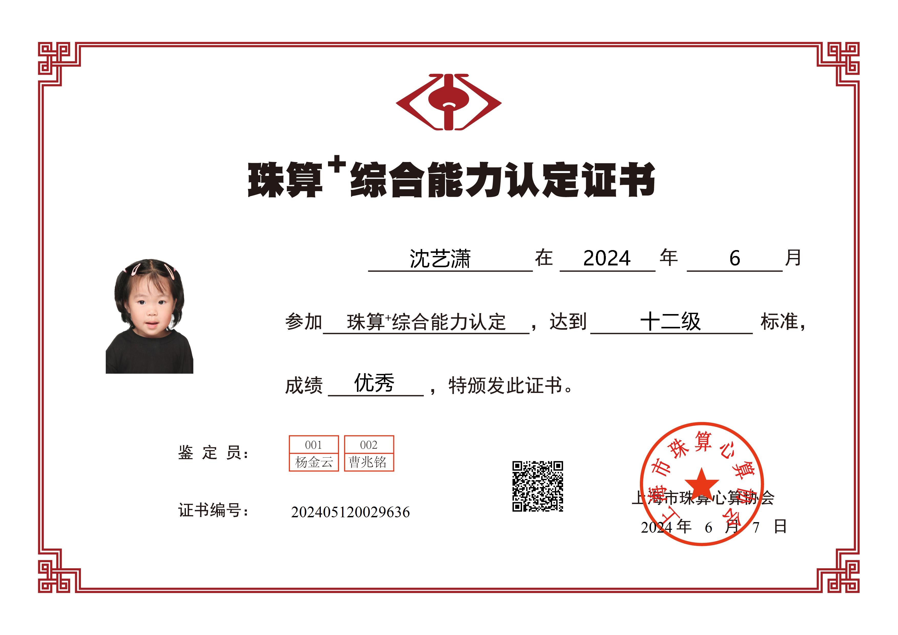 2024年7月8日 23:28 435401 20240607-少儿学校-珠算+十二级-沈艺潇.jpg