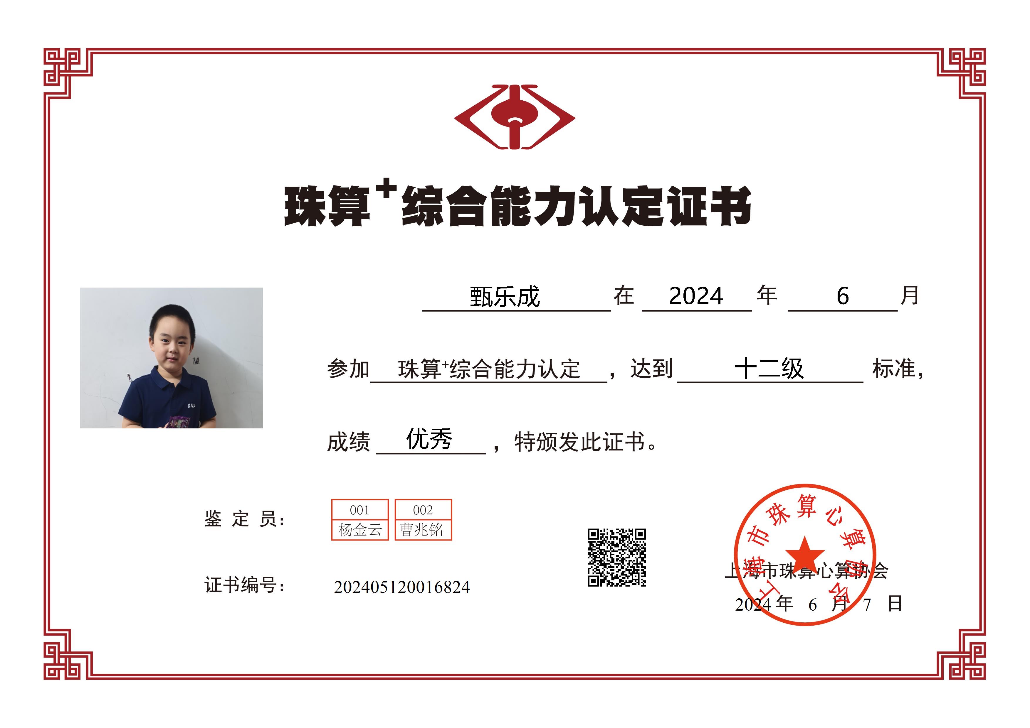 2024年7月8日 23:28 433601 20240607-少儿学校-珠算+十二级-甄乐成.jpg